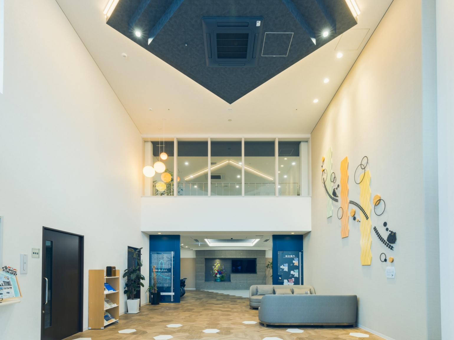 施設内は、入居者の心地よい空間を意識し、全居室に見守りカメラとセンサーを導入。また共同生活スペース等に自動調光調色照明をつけ、スケジュール運転することで、入居者が自宅にいるような心地良い空間を作り上げております。職員導線では、各階スタッフ室内に上下階段を設置。個浴、リフト浴、介助浴、機械浴等、様々な浴槽も設けております。